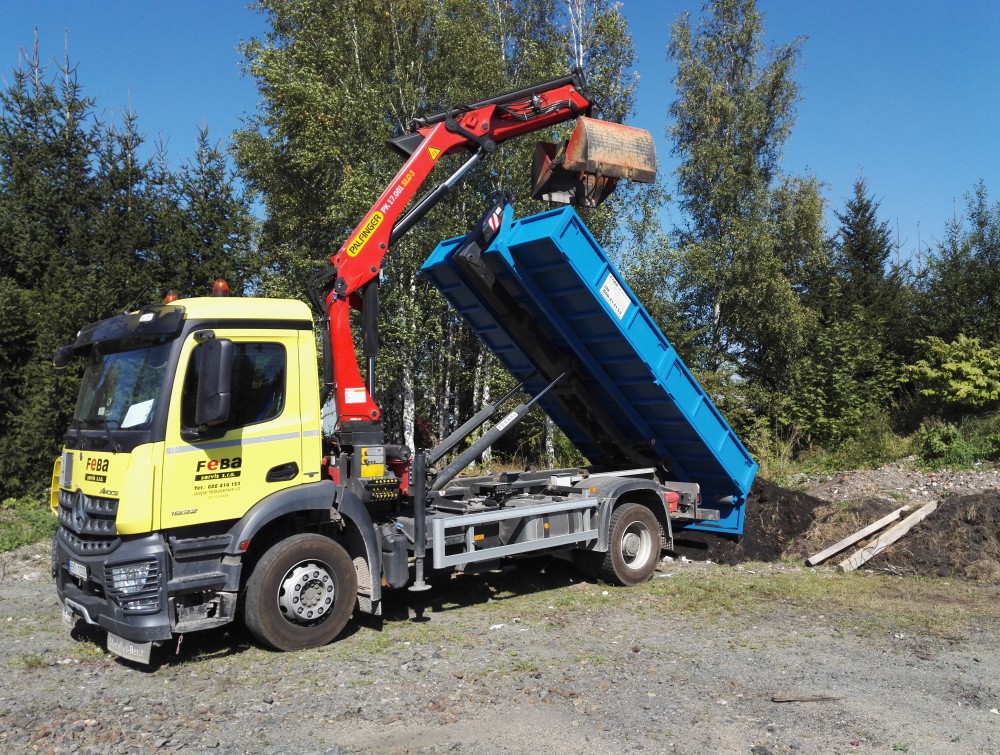 Hydraulickou ruku využíváme při nakládce kontejnerů, převozu stavebního materiálu, dřeva, suti i při speciálních manipulacích v těžko přístupném terénu.